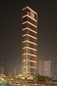 Crafted with a sleek façade of crystalline glass accented by brass, high-performance finishes, and smart living innovation, this development reflects Binghatti’s hallmark balance of architectural refinement and contemporary convenience.